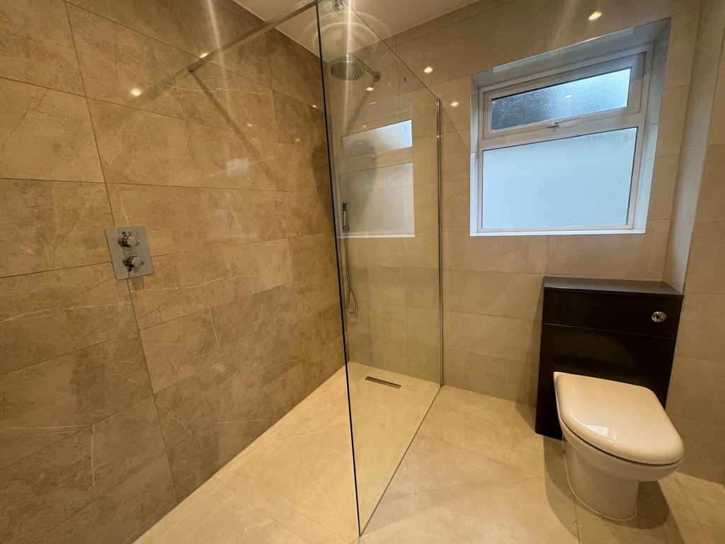 The beautifully finished bathroom features a luxurious walk in shower, modern tiling and high quality fittings, giving the space a fresh, contemporary feel.