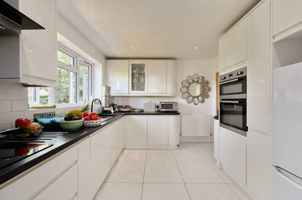 This exceptional four-bedroom, two-bathroom detached house seamlessly blends timeless architecture with contemporary comfort, creating a truly distinguished family home. The property welcomes you with an expansive driveway and integral garage, offering ample off-road parking and enhanced kerb appeal. A well-maintained front garden with mature shrubs frames the elegant façade, while the inviting entrance hall adorned with polished wooden flooring, abundant natural light, and decorative pendant lighting sets the tone for the quality found throughout. Inside, the generous reception room boasts a striking fireplace, wood flooring, and charming arched windows, creating a cosy and refined space for relaxation. The open plan living area flows effortlessly to the outdoors via expansive bi-fold doors, providing direct access to a private garden, lush patio, and secluded seating areas ideal for alfresco dining or quiet moments in nature.