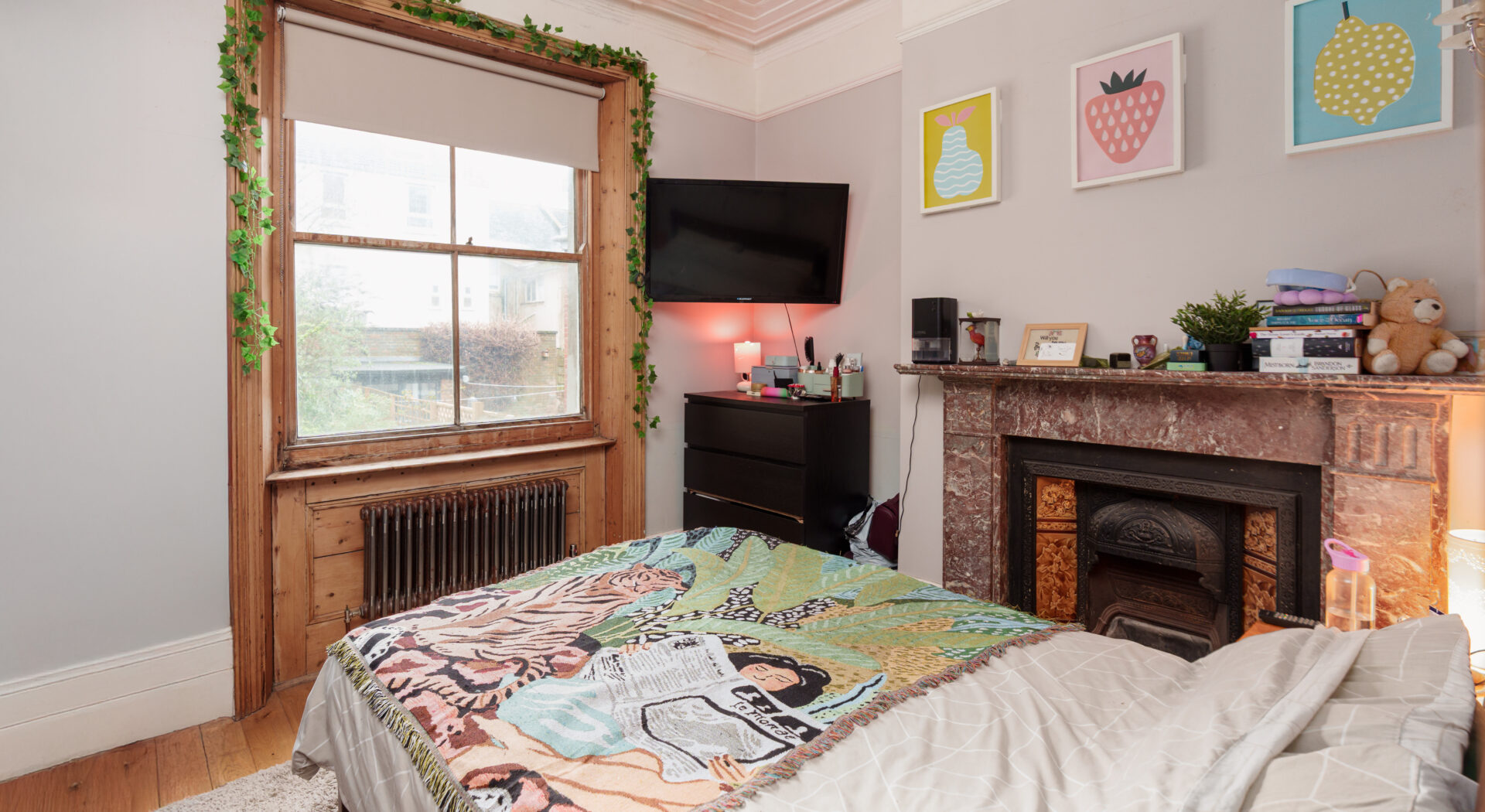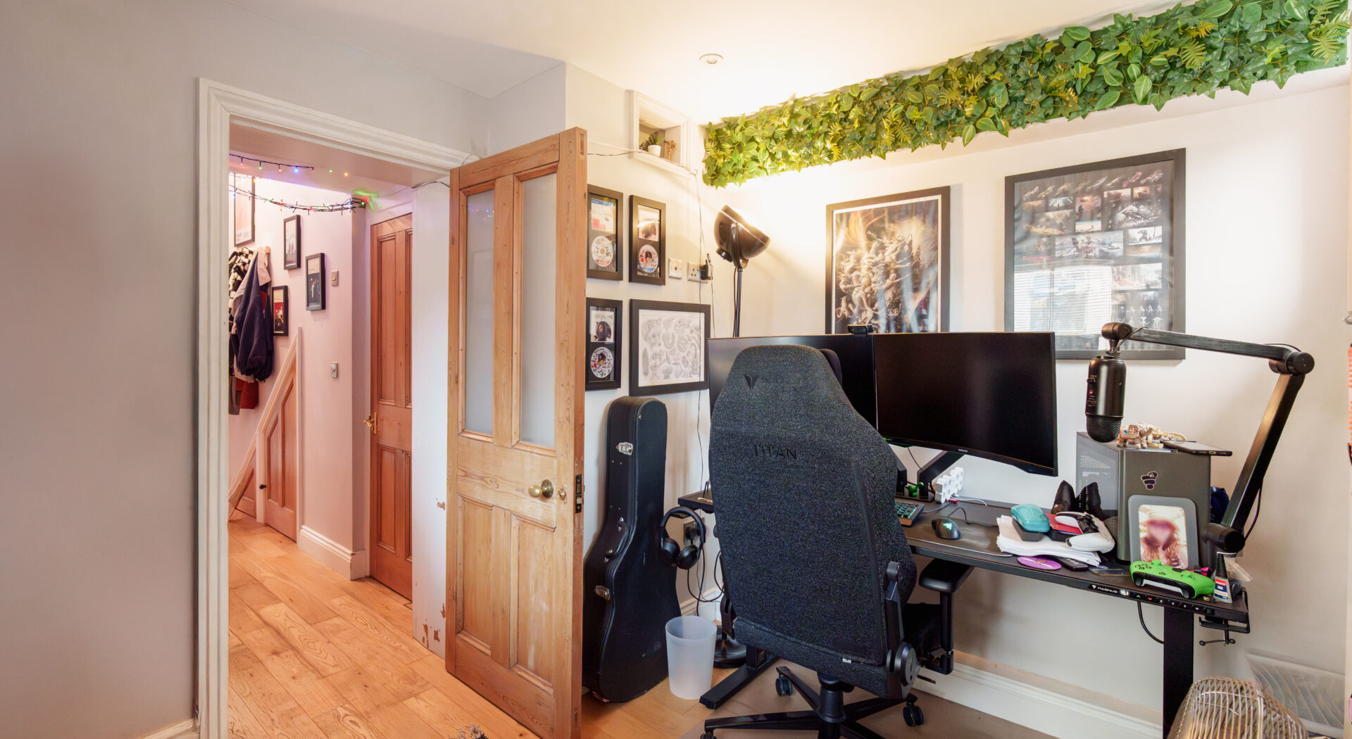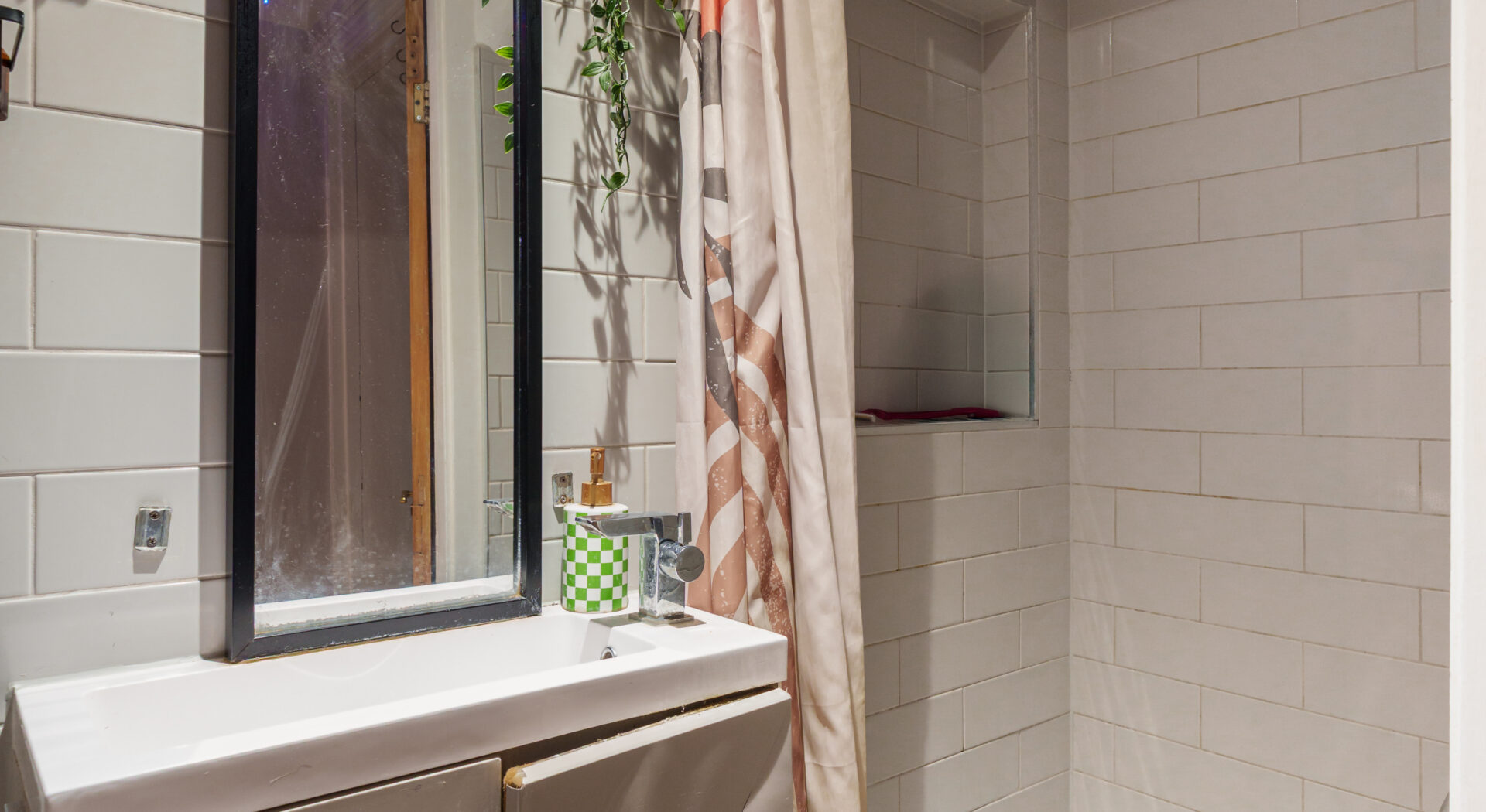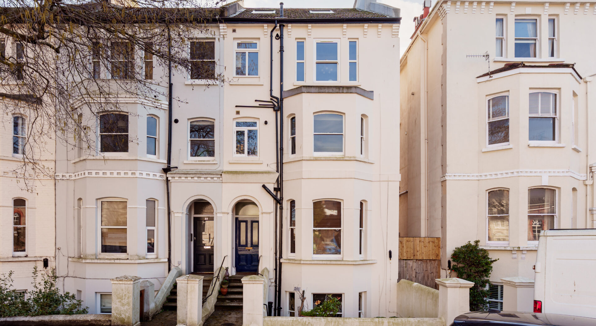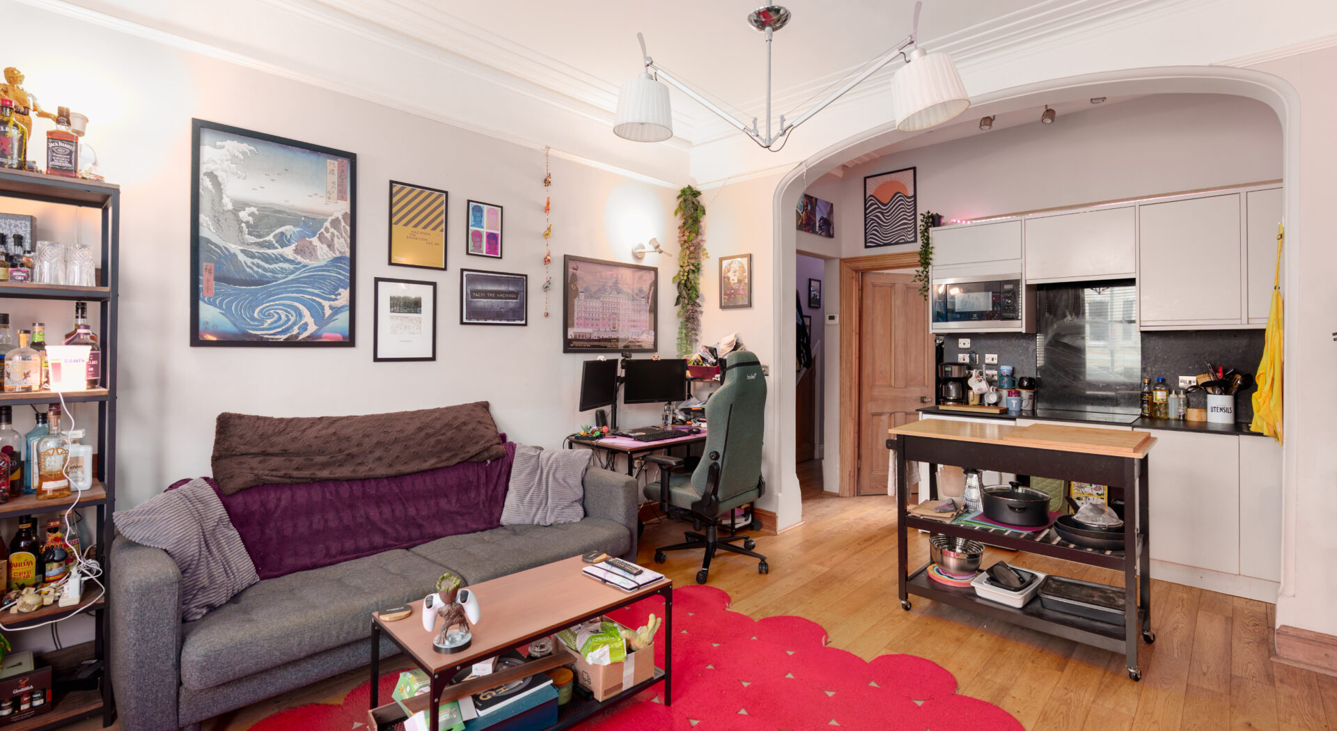 The home’s period features, including elegant bay windows and a traditional arched entrance, are complemented by tasteful modern updates. The stylish bathroom is fitted with a contemporary walk in shower, wall mounted toilet, and compact storage solutions, giving a clean and minimalist finish. Throughout the flat, wooden flooring and decorative wall art add warmth and character, while thoughtful lighting and well-placed mirrors maximise the sense of space and light. This property offers a harmonious blend of heritage charm, practical modern features, and tranquil outdoor living, making it an outstanding opportunity for discerning buyers seeking a refined and comfortable home.