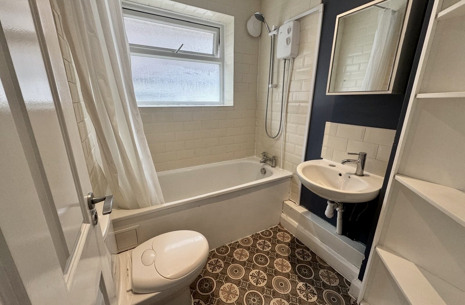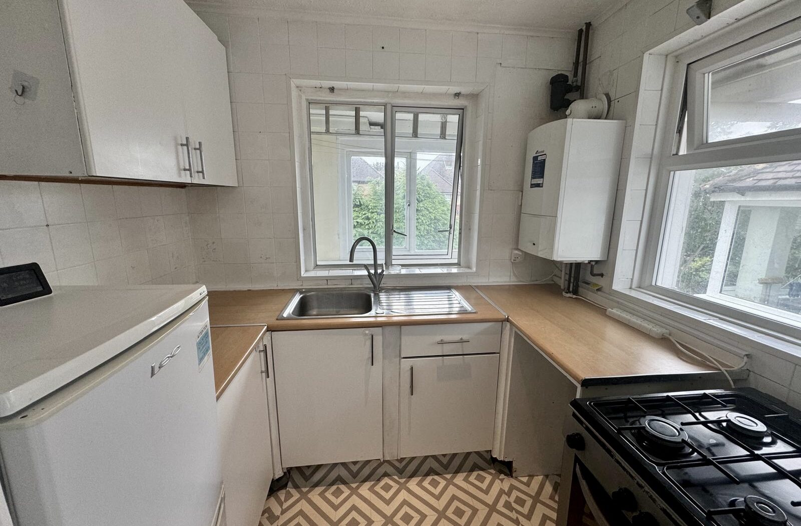 This well presented two bedroom flat offers a superb combination of comfort, practicality, and modern living. The property features a bright and inviting reception room, enhanced by a large window that floods the space with natural light and highlights the neutral decor. The modern kitchen benefits from large windows, a contemporary gas stove, and ample counter space, making it ideal for those who enjoy cooking and entertaining. Both bedrooms are thoughtfully designed, with the principal bedroom boasting a striking bay window, sleek laminate flooring, and a built in wardrobe, while the second bedroom also offers generous natural light. The flat includes a stylish bathroom fitted with modern fixtures, an electric shower, and patterned floor tiles, complemented by built in shelves for practical storage.