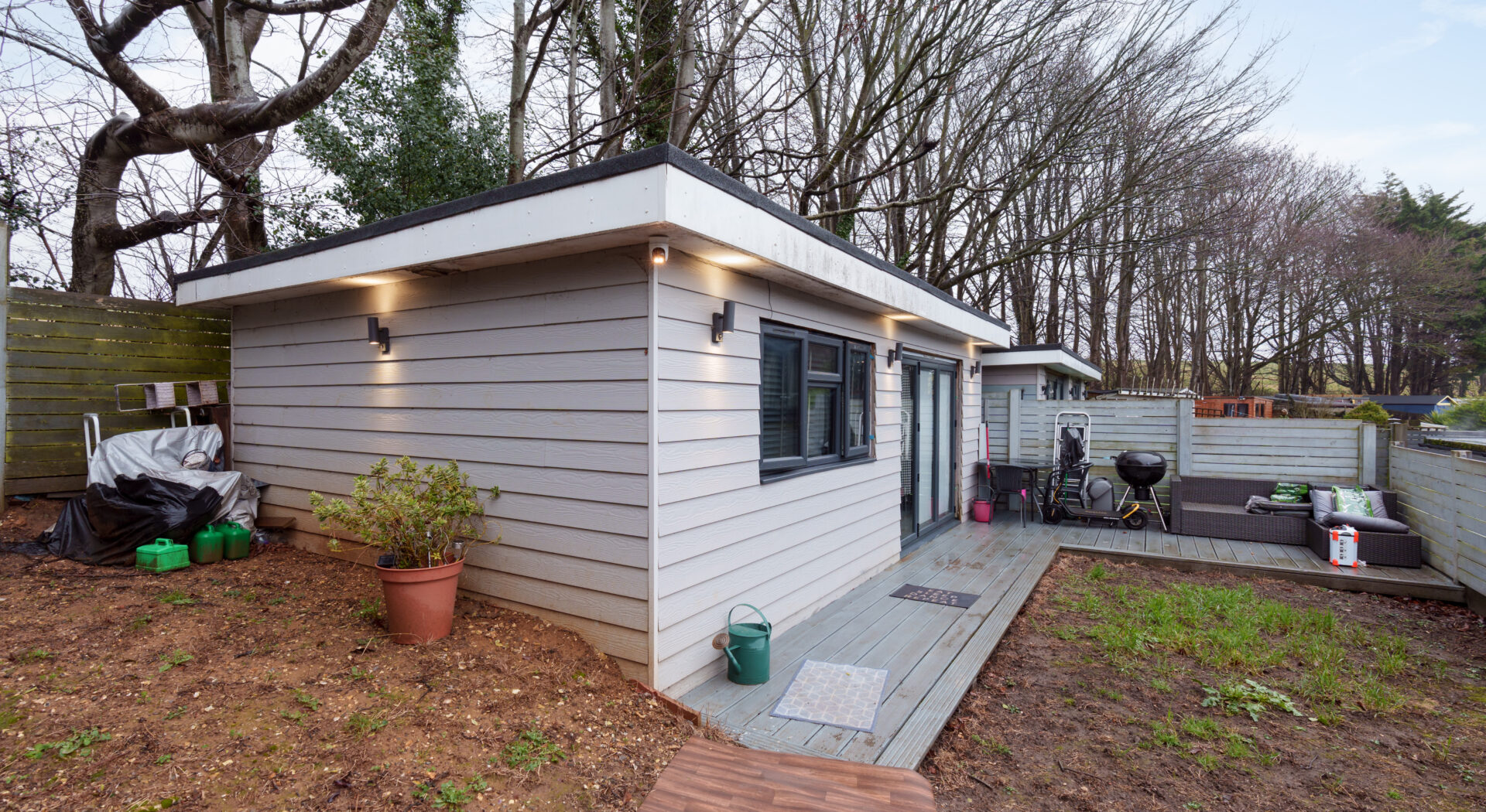 The property is complemented by well maintained outside space, providing both relaxation and practicality. A private rear garden offers ample room for outdoor seating and entertaining, with mature borders and a lawned area for residents to enjoy. The detached annexe is situated within the garden, accessed via a paved path, and benefits from its own secluded patio area.