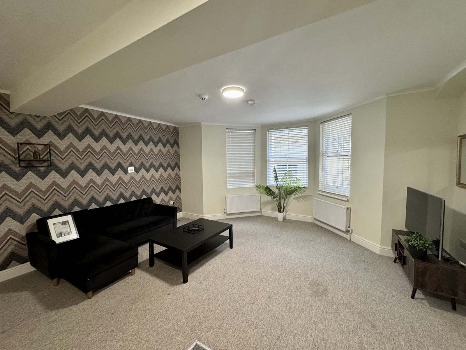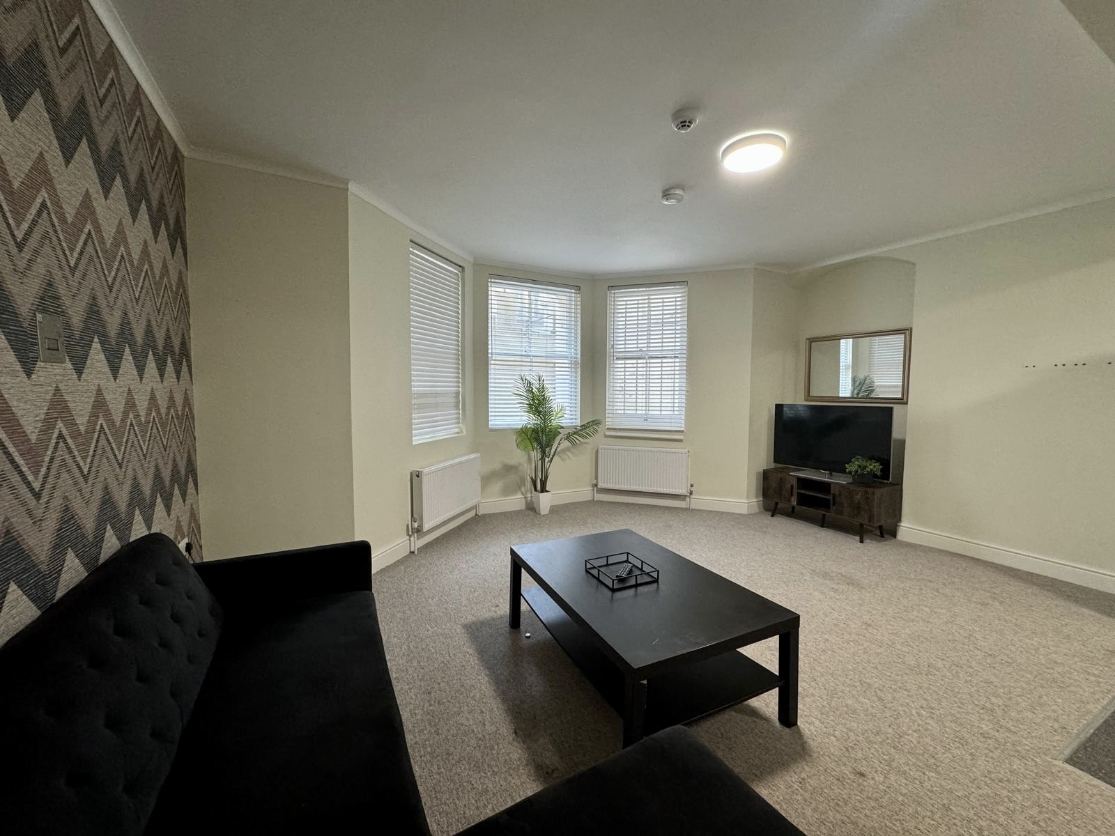 Throughout the flat, decorative feature and accent walls add a touch of character and elegance, creating a sense of refinement that runs through every inch of the space. The contemporary bathroom is no exception, with its modern shower enclosure and tasteful design elements.