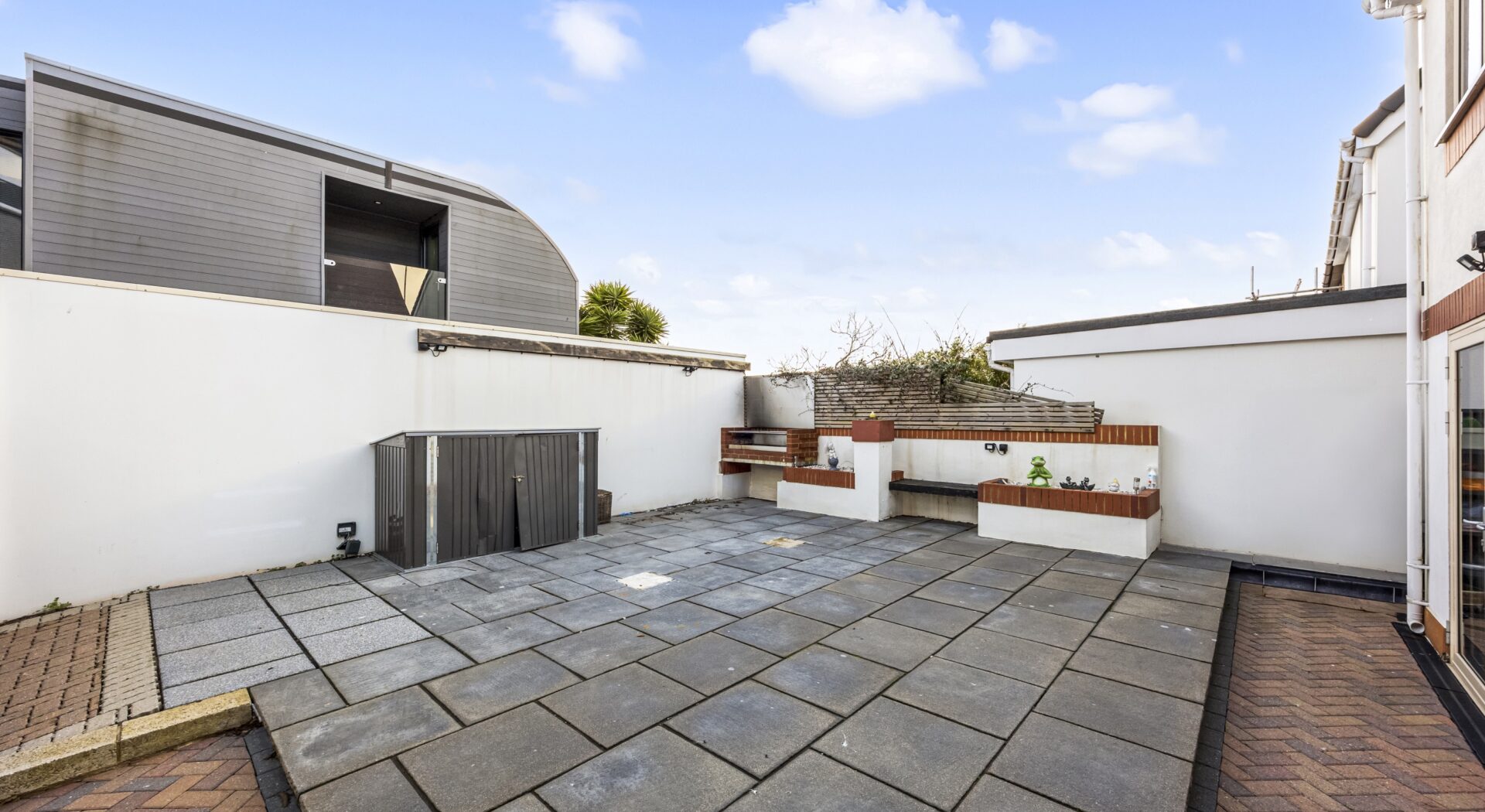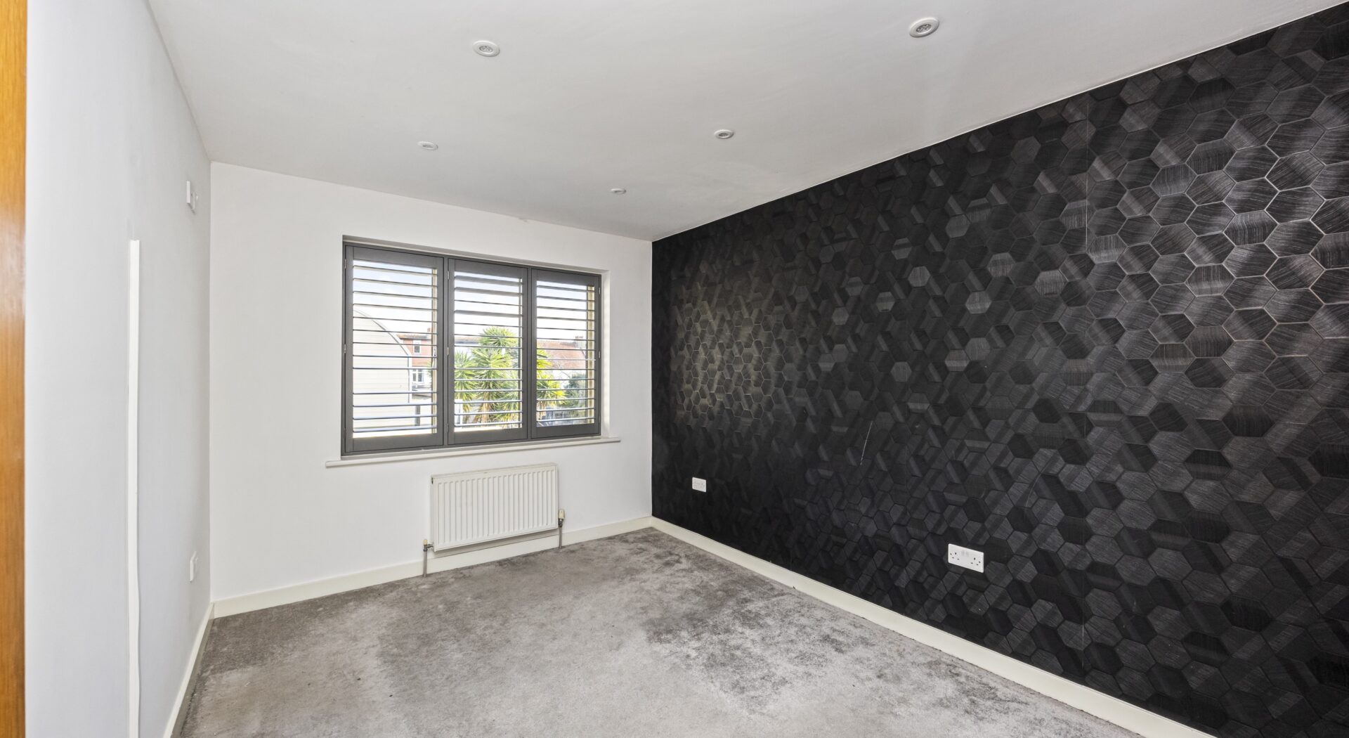The property’s impressive exterior is defined by its modern facade, distinctive gable roof, and a combination of brick and white finishes, complemented by off road parking and secure gated access for added convenience and peace of mind. Enjoy the ultimate indoor outdoor lifestyle with bi fold doors opening onto a generous, low maintenance paved patio and garden, ideal for alfresco dining, relaxation, and entertaining. The outdoor area is enhanced by a built in barbeque, dedicated seating, and secure fencing, perfect for families and social gatherings. Additional premium touches include a striking glass balustrade staircase, modern accent walls with geometric patterns, and ample built-in storage throughout. Every detail has been thoughtfully considered, from the welcoming striped carpeted staircase in the hallway to the practical outdoor storage. The combination of elegant bay windows, contemporary lighting, and versatile living spaces ensures this home meets the needs of modern families or those seeking stylish, flexible accommodation. This residence is a rare offering, presenting a premium lifestyle opportunity with every feature designed for comfort, convenience, and sophistication.