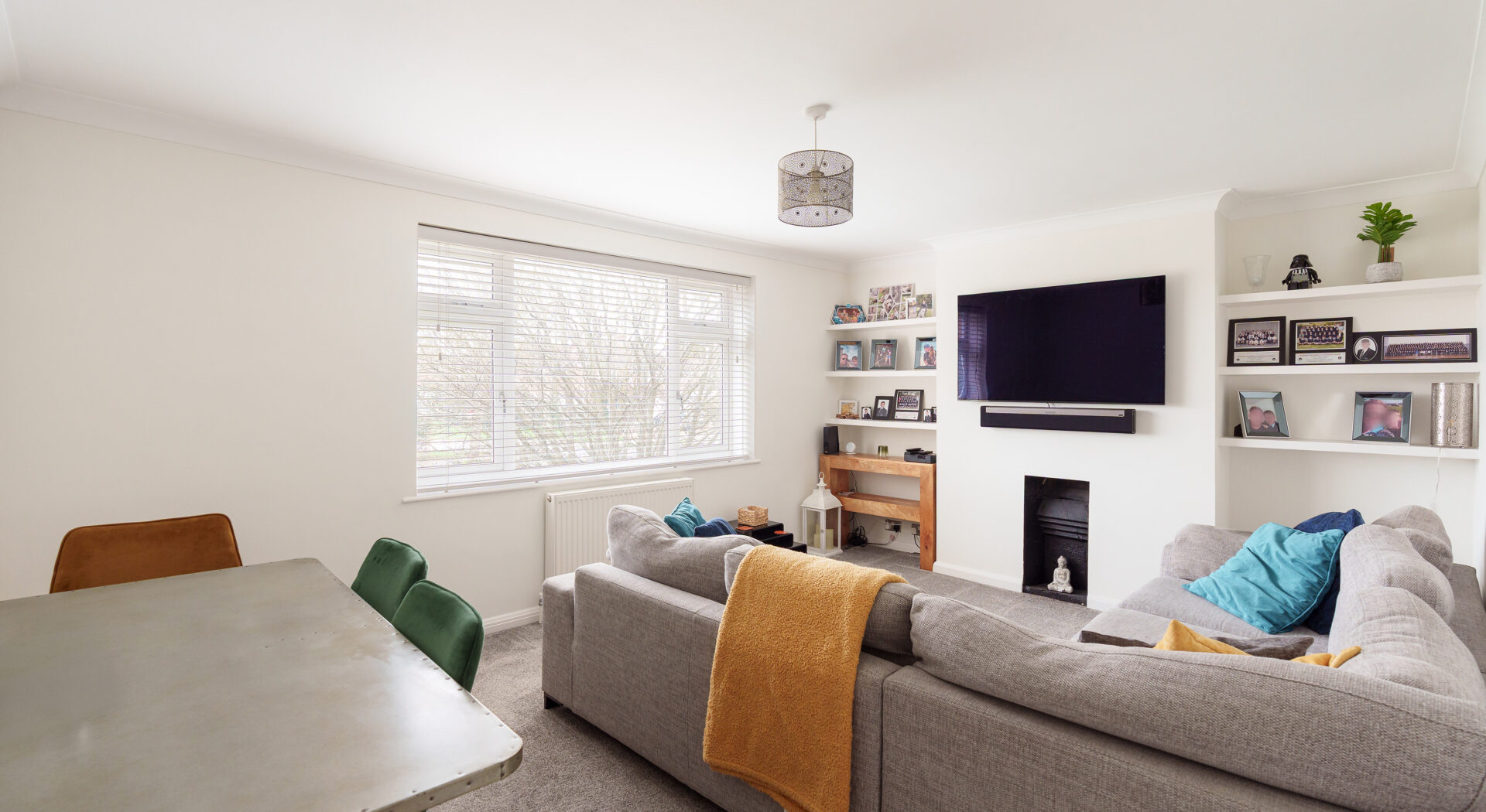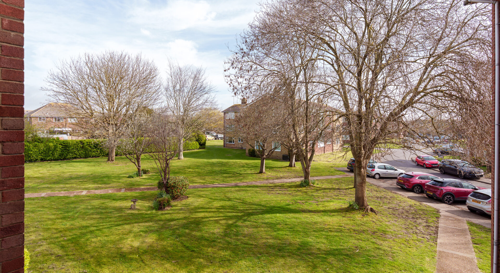 Additional features set this property apart, making it an outstanding choice for discerning buyers. A charming private balcony, complete with a cosy outdoor seating area and rustic fencing for privacy, provides an ideal spot to unwind and enjoy leafy, green views. Residents also benefit from access to expansive and beautifully maintained communal gardens, featuring mature trees for natural shade and tranquillity, perfect for outdoor relaxation or social gatherings. Off-road parking and a garage is available, ensuring convenience and peace of mind for residents and guests alike. The classic brick exterior of the building lends a sense of character and durability, while the abundance of large windows throughout the property maximises natural light and enhances the overall sense of space. Modern touches such as a wall-mounted TV, contemporary light fixtures, and built-in shelving add to the property’s premium feel, ensuring comfort and style in every room. In summary, this two-bedroom flat seamlessly combines modern interiors, generous natural light, outdoor living, and practical amenities, making it a perfect retreat for those seeking a harmonious balance of comfort and convenience.