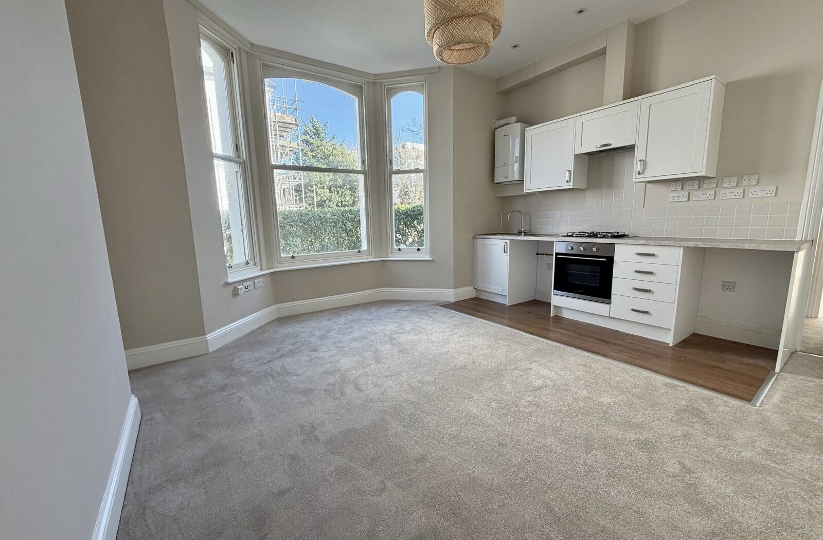 The apartment boasts a bright and spacious living area enhanced by impressive high ceilings and attractive sash bay windows, allowing an abundance of natural light and creating a real sense of space and elegance. The well appointed kitchen offers both practicality and modern appeal, while the generous double bedroom provides a calm and comfortable retreat. A sleek, modern bathroom completes the accommodation.