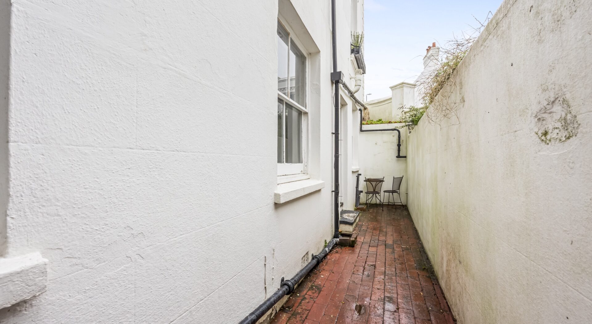 Further enhancing the appeal, this property enjoys a private, low-maintenance patio area, perfect for relaxing outdoors. The red brick flooring and crisp white walls create a charming setting for morning coffee or evening unwinding. This unique combination of period character, modern finishes, private outdoor space, and practical features makes this flat an outstanding opportunity for those seeking stylish, comfortable, and convenient living.
