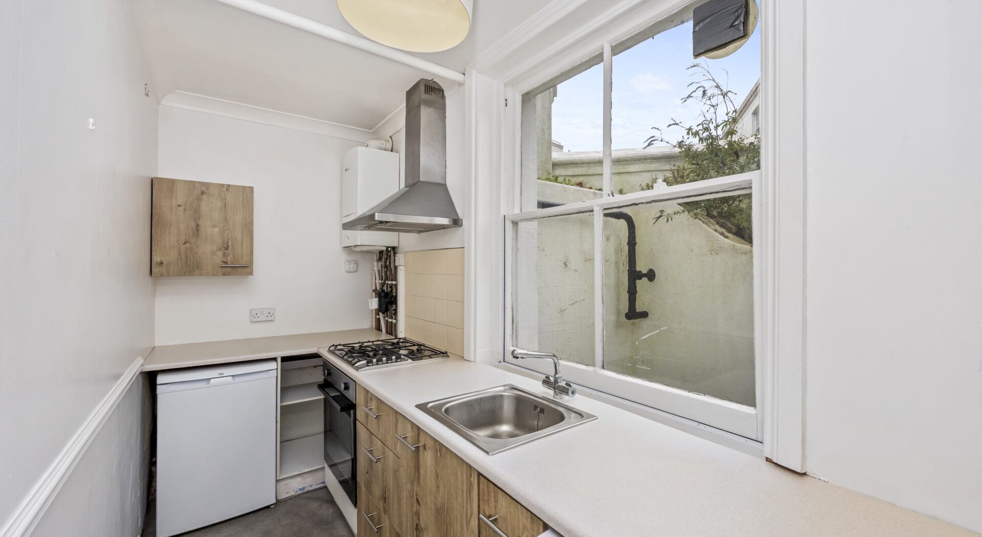 Presenting a spacious one bedroom, one bathroom period flat that beautifully blends classic charm with modern convenience. This well proportioned residence is situated within a characterful building boasting traditional architectural features, including sash windows and a distinctive slate roof, positioned on a prominent corner for enhanced natural light and street appeal. The spacious reception room is flooded with sunlight via large windows, offering a bright and airy atmosphere perfect for comfortable living and entertaining. The flat’s thoughtful layout provides seamless flow between the living area, hallway, and kitchen, all finished in a neutral colour palette to create a welcoming and versatile backdrop.