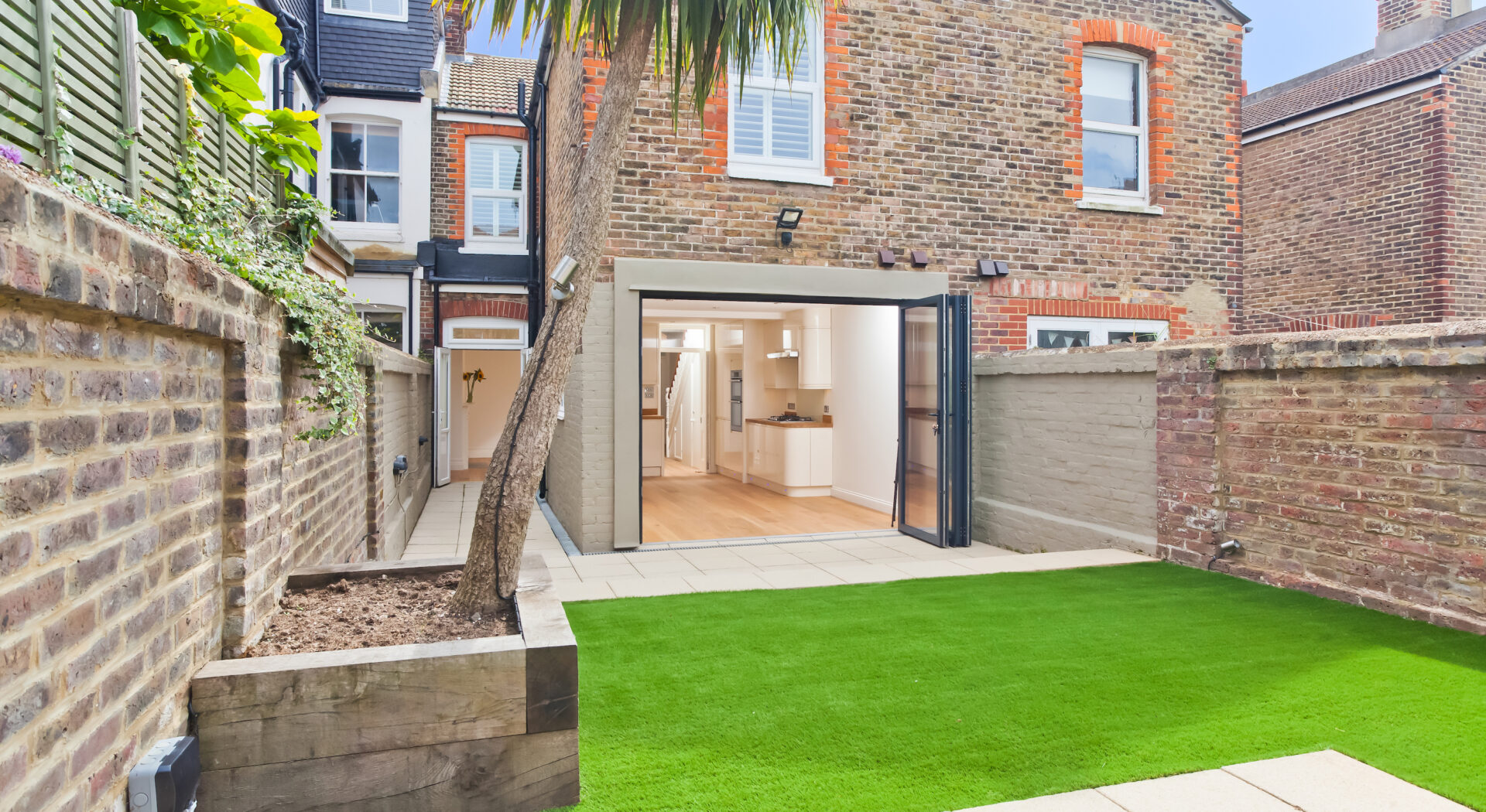 This stunning three bedroom Edwardian terraced house blends timeless period charm with contemporary finishes throughout. The main reception room is beautifully appointed, featuring elegant wooden flooring, a classic fireplace, and a large bay window with stylish shutters that flood the space with natural light. The open plan kitchen and dining area boasts modern kitchen units, integrated appliances, sleek wooden countertops, and wood flooring. Bi-fold doors provide seamless access to a landscaped private garden, complete with a low maintenance artificial lawn and a spacious patio perfect for indoor-outdoor living and entertaining. The property's bright and welcoming hallways feature hardwood flooring, built in under stair storage, and sophisticated decorative touches, while the well proportioned bedrooms offer neutral decor, light carpets, and period fireplaces for added character.