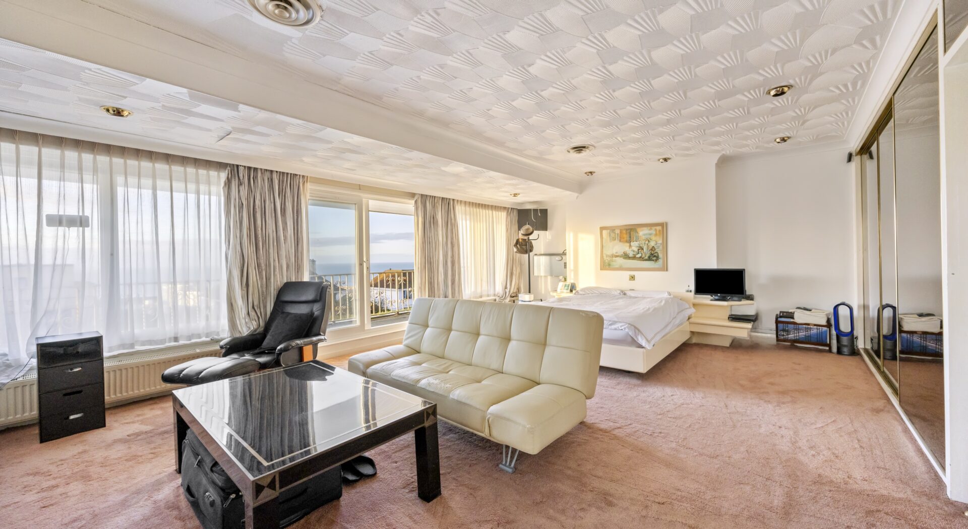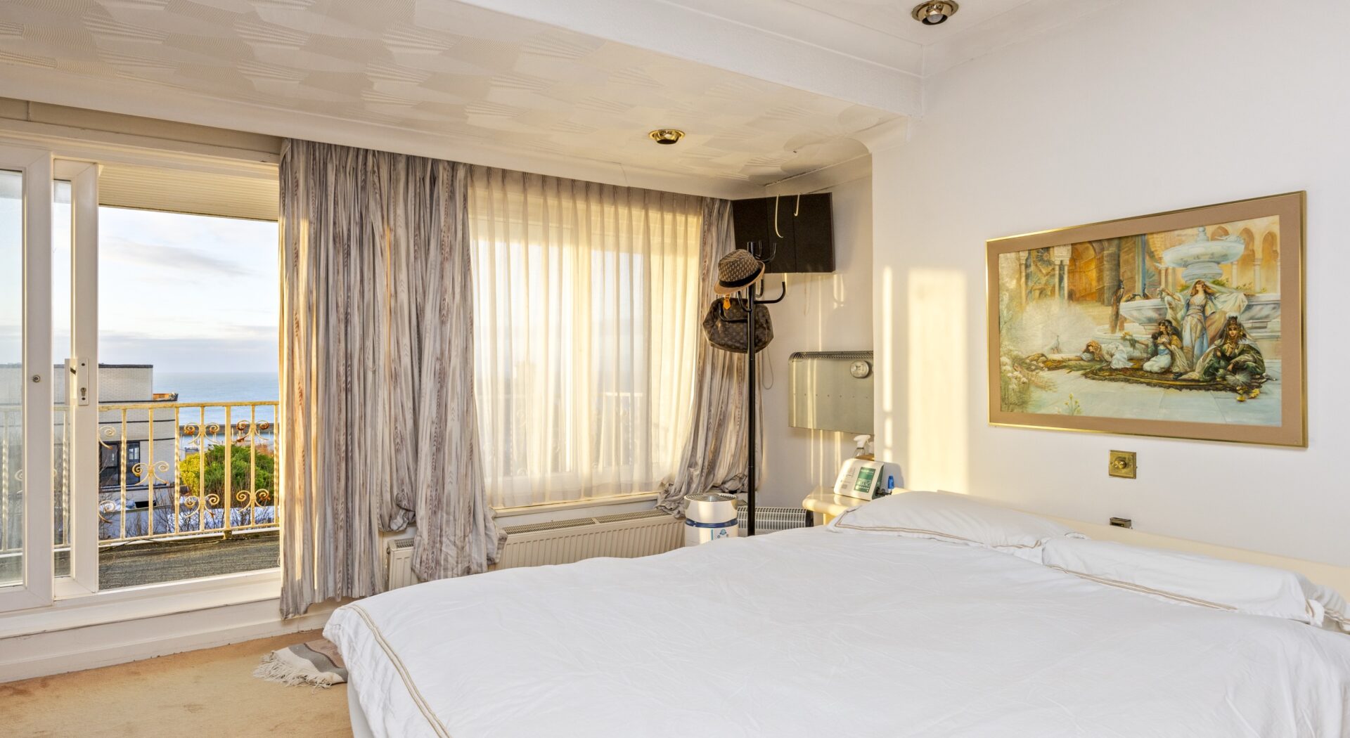 The bedroom accommodation is equally impressive, with four well-proportioned rooms designed to maximise comfort and outlook. Two benefit from direct access to balconies with elevated sea views, while mirrored wardrobes and distinctive ceiling features enhance both light and space. Three bathrooms serve the home, including spa-style suites with sunken bathing, walk-in showers and modern finishes again offering scope for upgrading to create a truly luxurious retreat.
