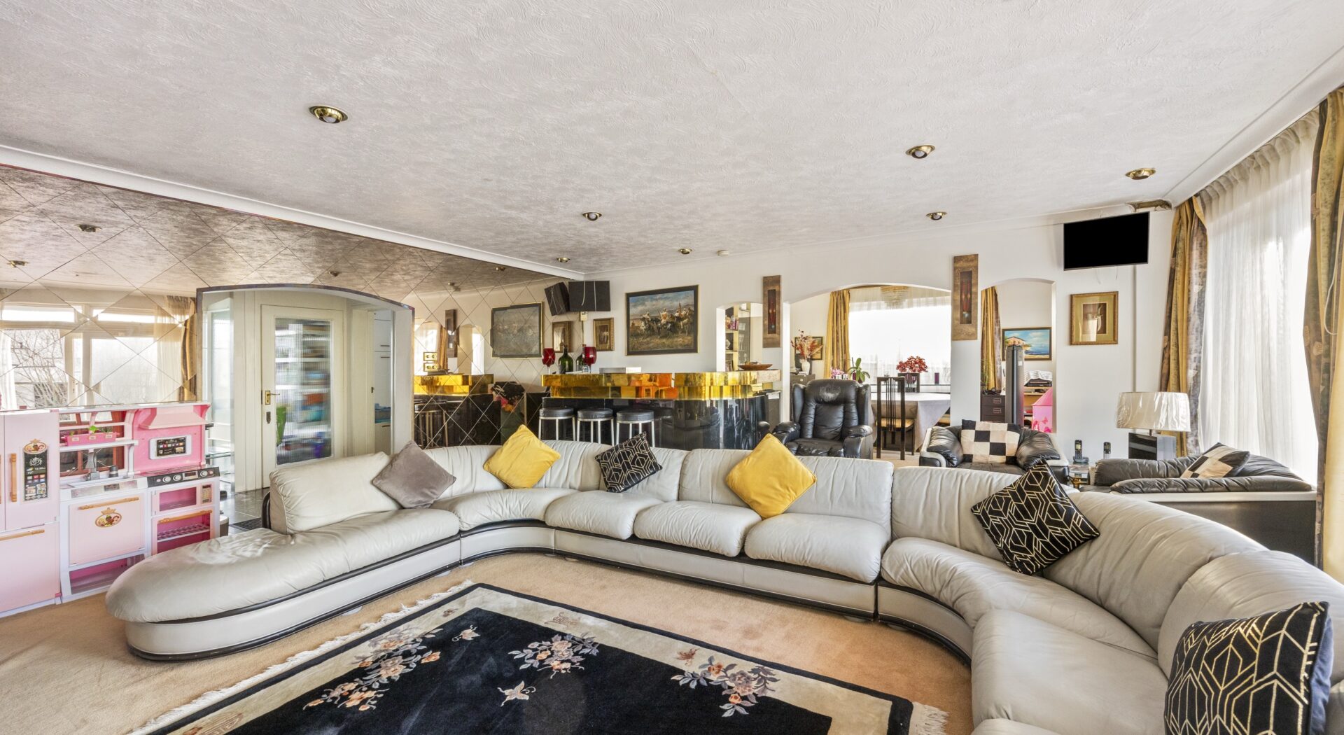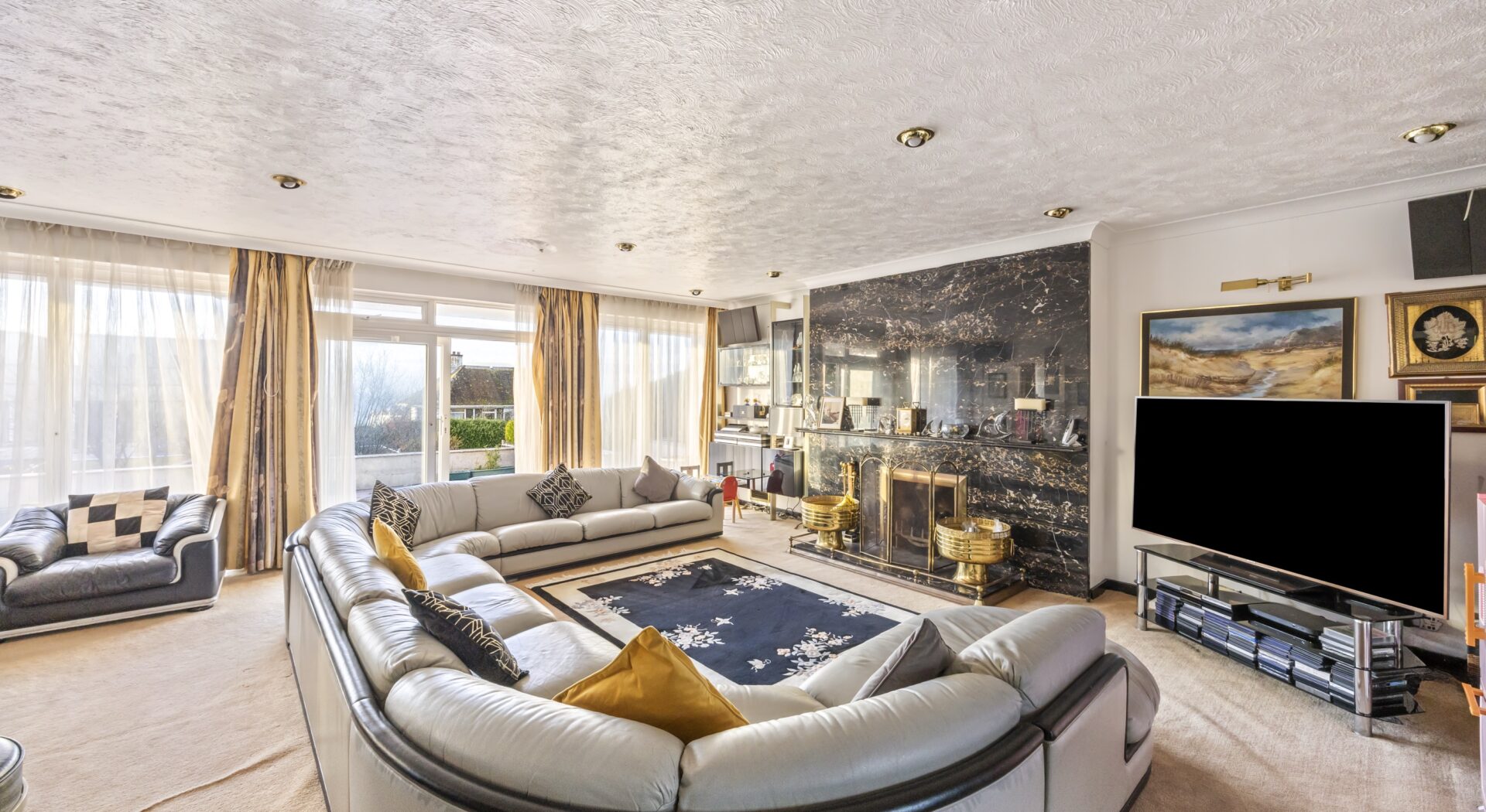 This substantial four-bedroom, three-bathroom detached bungalow presents a rare opportunity to acquire a generously proportioned home in a prime residential setting, offering outstanding scope for refurbishment, remodelling or future development (subject to the necessary consents). Set back from the road behind secure gated access, the property immediately impresses with a wide private driveway, double garage, and an attractively landscaped front garden.