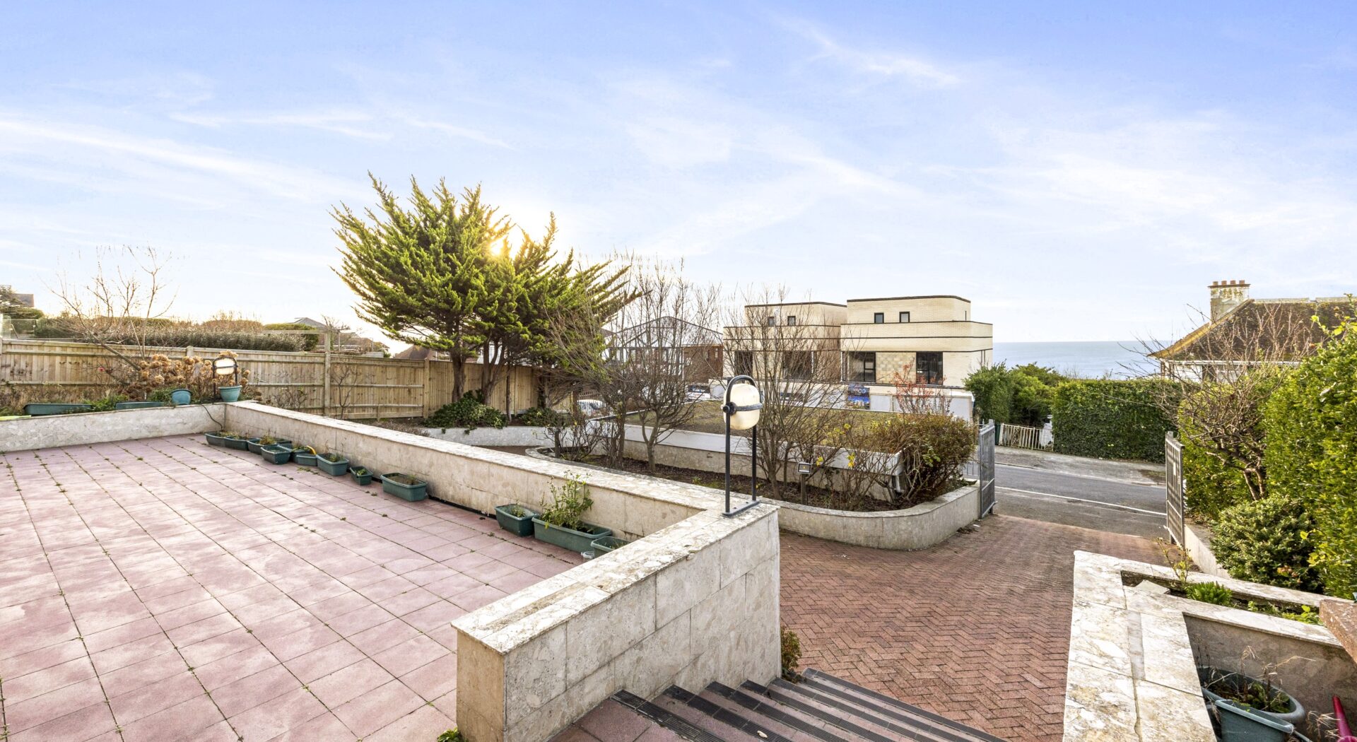 Externally, the rear garden provides a private and tranquil setting, featuring a large lawn, mature planting and secure boundaries. Terraces and patios extend the living space outdoors, complemented by a dedicated barbecue area and outdoor fireplace perfect for alfresco entertaining. With ample off street parking, generous plot size and a peaceful residential position, this property represents a compelling opportunity for purchasers seeking a prestigious coastal home with exceptional potential to add value.